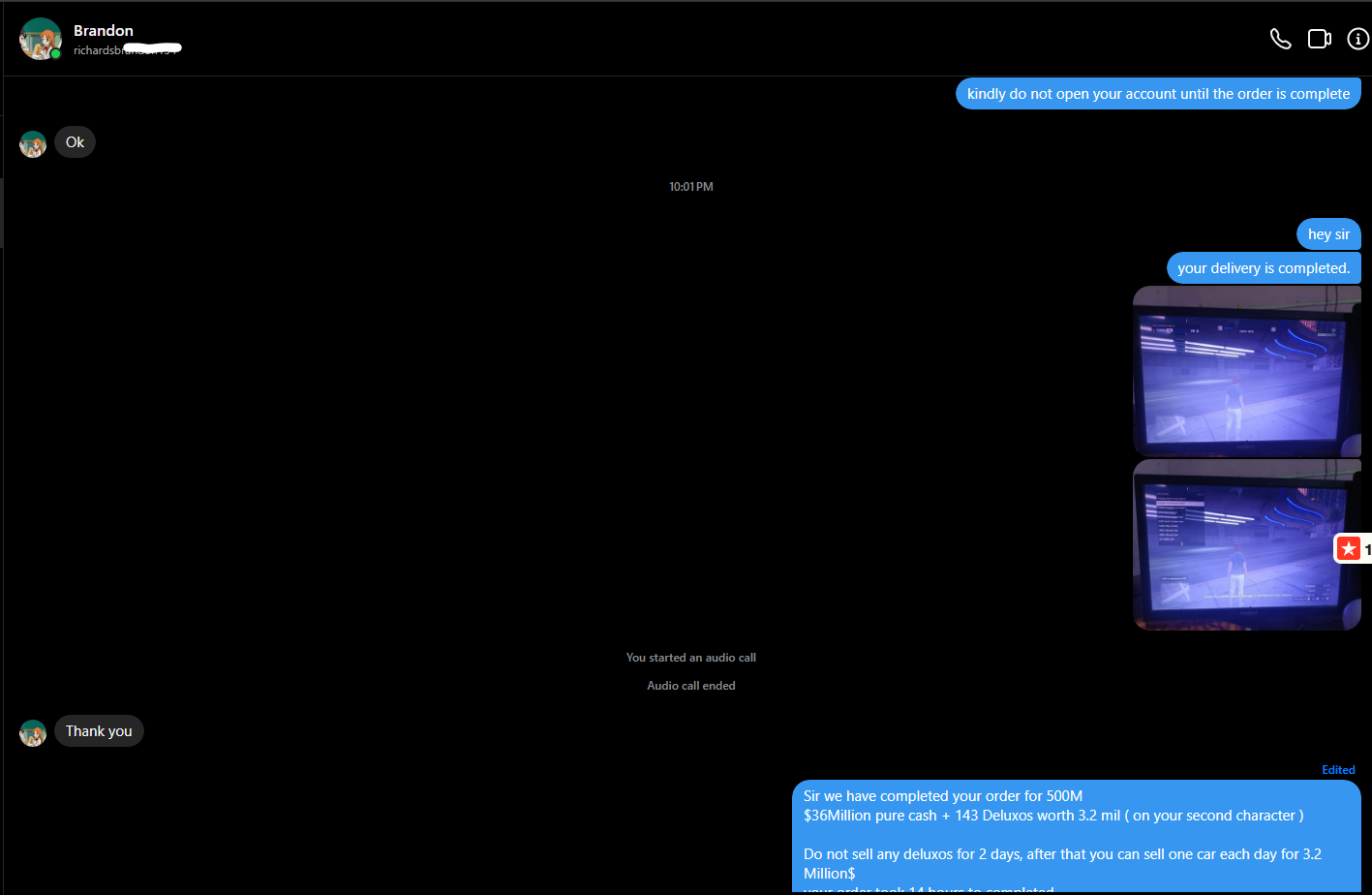 Minimum 25Million Cash on all orders and maximum 60Million cash for larger orders!