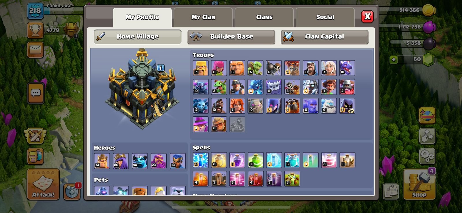 IOS / Android ???? TH17 Clash of Clans Account | Level 218 | Max Heroes | Strong Base | Builder Hall 10 ????